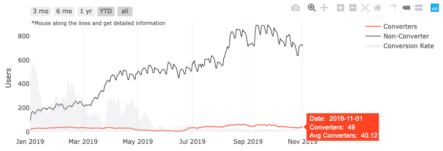 The conversion rate was one of the client’s biggest concerns and the below data visualization makes the case for it.