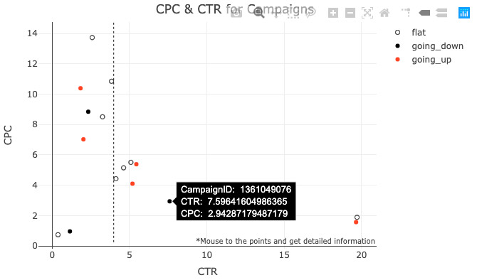 - Most campaigns have a flat or downward trend of CPC, which means that all of these campaigns worked well in this time period