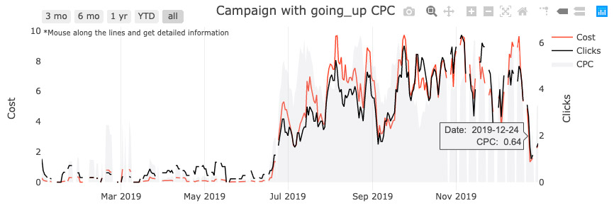 As you can see, after CPC is optimized and tends to flatten. Once the budget increases, the Clicks will increase and keep a stable trend. If CPC increases again, we will take additional actions.